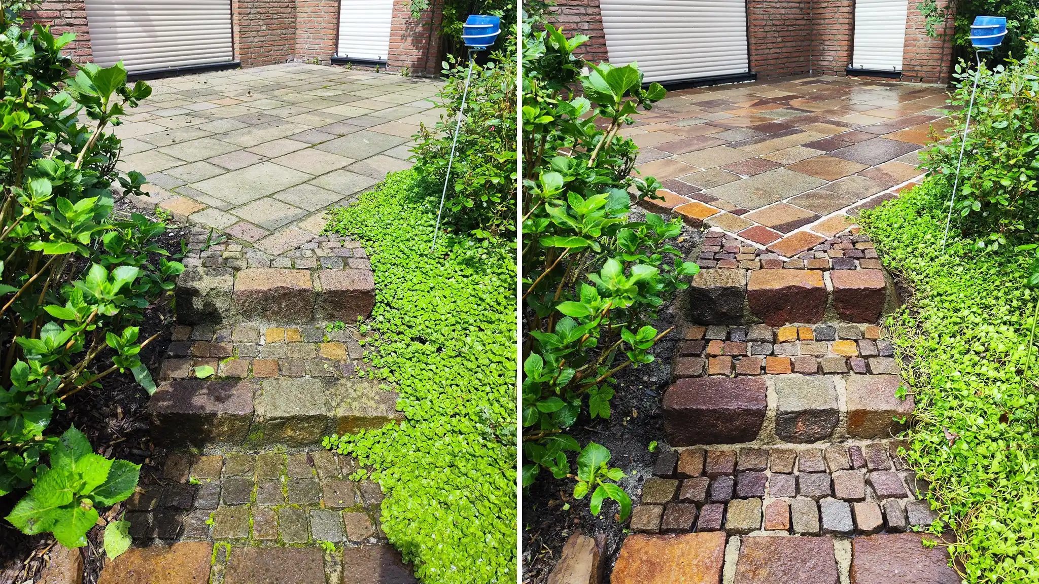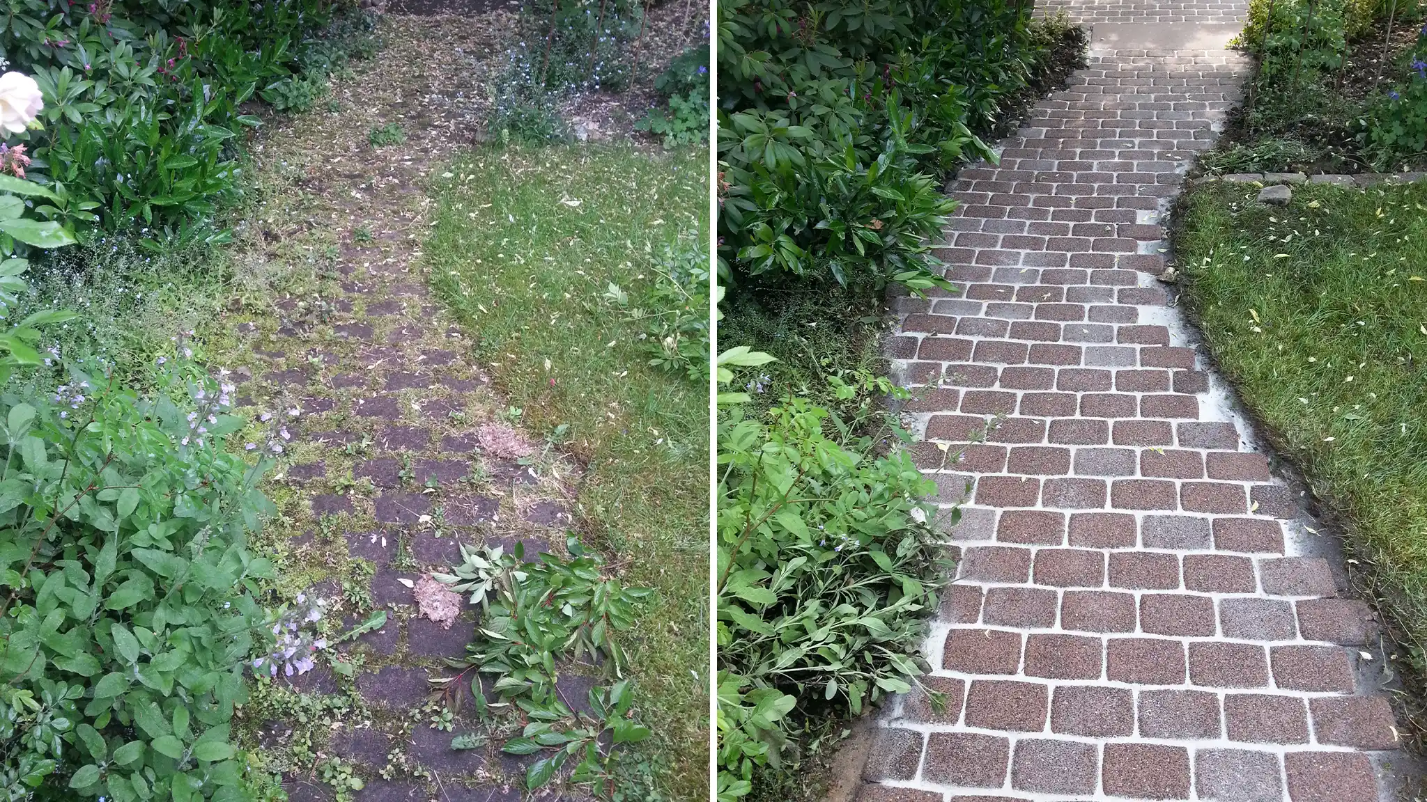 Wir bieten professionelle Reinigung und Pflege aller Stein-, Pflaster- und Betonflächen. Die Reinigung erfolgt mit unserem professionellen, umweltfreundlichen Flächenreiniger. Hierbei setzen wir ein spezielles Hitzeverfahren ein: eine Reinigung mit 100° heißem Wasser – ganz ohne Chemie – mit dem alle Verunreinigungen entfernt werden. Das Ziel ist eine langfristige Sauberkeit und Werterhaltung.